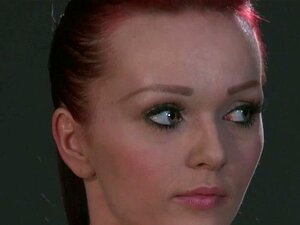 Esclava pelirroja se folla una polla enorme. Atada a la esclava pelirroja del techo, Amarna, recibiendo caricias en su coño y vibrada, luego en el sofá montando la enorme polla del amo Rose hasta una corrida interna